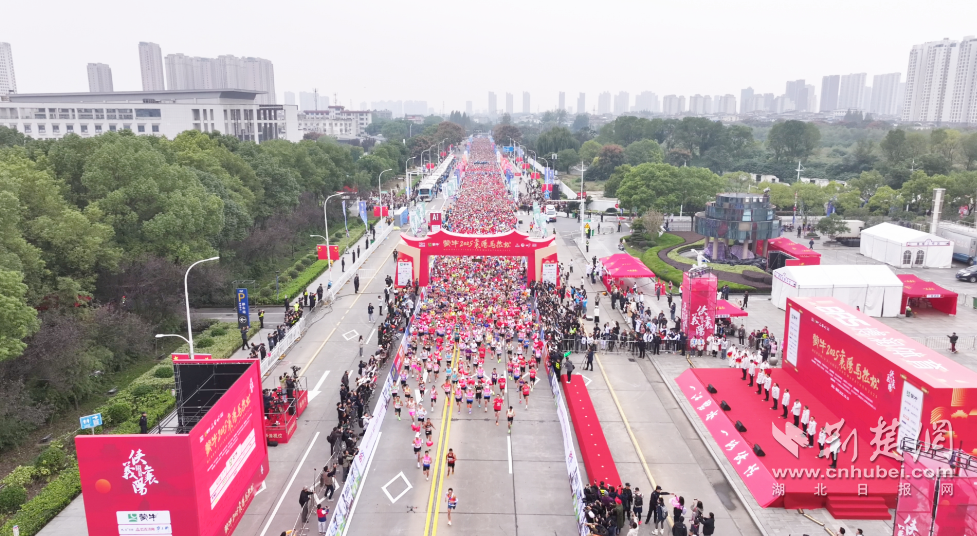 随着发令枪的响起,22000名选手在来自襄阳的世界冠军莫万宇的带领下,冲向起点,用脚步丈量这座城市的古跑道。