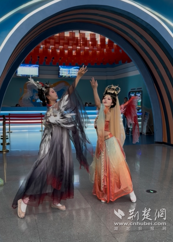 那天上午9点左右,水族馆尚未打开,入口很紧。在大厅里,诸如“ Chang'e”之类的仙女穿着hanfu愉快地跳舞,这吸引了游客停下来欣赏。